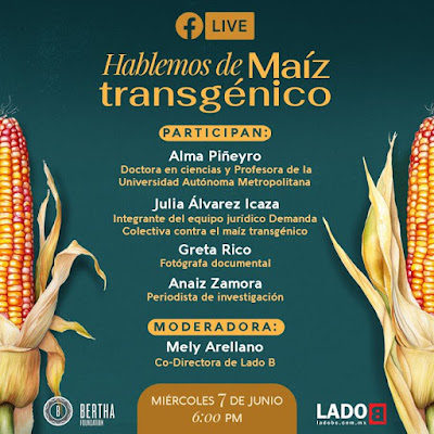 El pasado miércoles 24 de mayo de 2023, la Campaña Nacional Sin Maíz No Hay País llevó a cabo la Conferencia de Prensa “un México sin maíces transgénicos: hacia una propuesta trinacional", en donde participaron Mercedes López Martinez (CNSMNHP y Asociación de Consumidores Orgánicos, México), Monserratt Téllez dando lectura al mensaje de Dale Wiehoff (productor de Estados Unidos), Rick Arnold (Consejo de Canadienses), Lynn Clarkson (Clarkson Grain, EEUU), Ben Dobson (Hudson Carbon, EEUU) y Timothy Wise (Institute for Agriculture and Trade Policy, EEUU), con la moderación de Malin Jönsson (CNSMNHP, México).